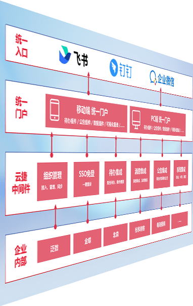 对协作平台提供支持服务,,,,支持企业应用与协作平台对接,,包含组织同步、、、消息集成、、、待办集成等。。支持目前主流的协作平台:钉钉、、企微和飞书。。